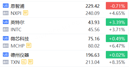 美股半导体概念股盘后普涨,德州仪器涨超8%,微芯科技涨超6%,英特尔、恩智浦涨超4%