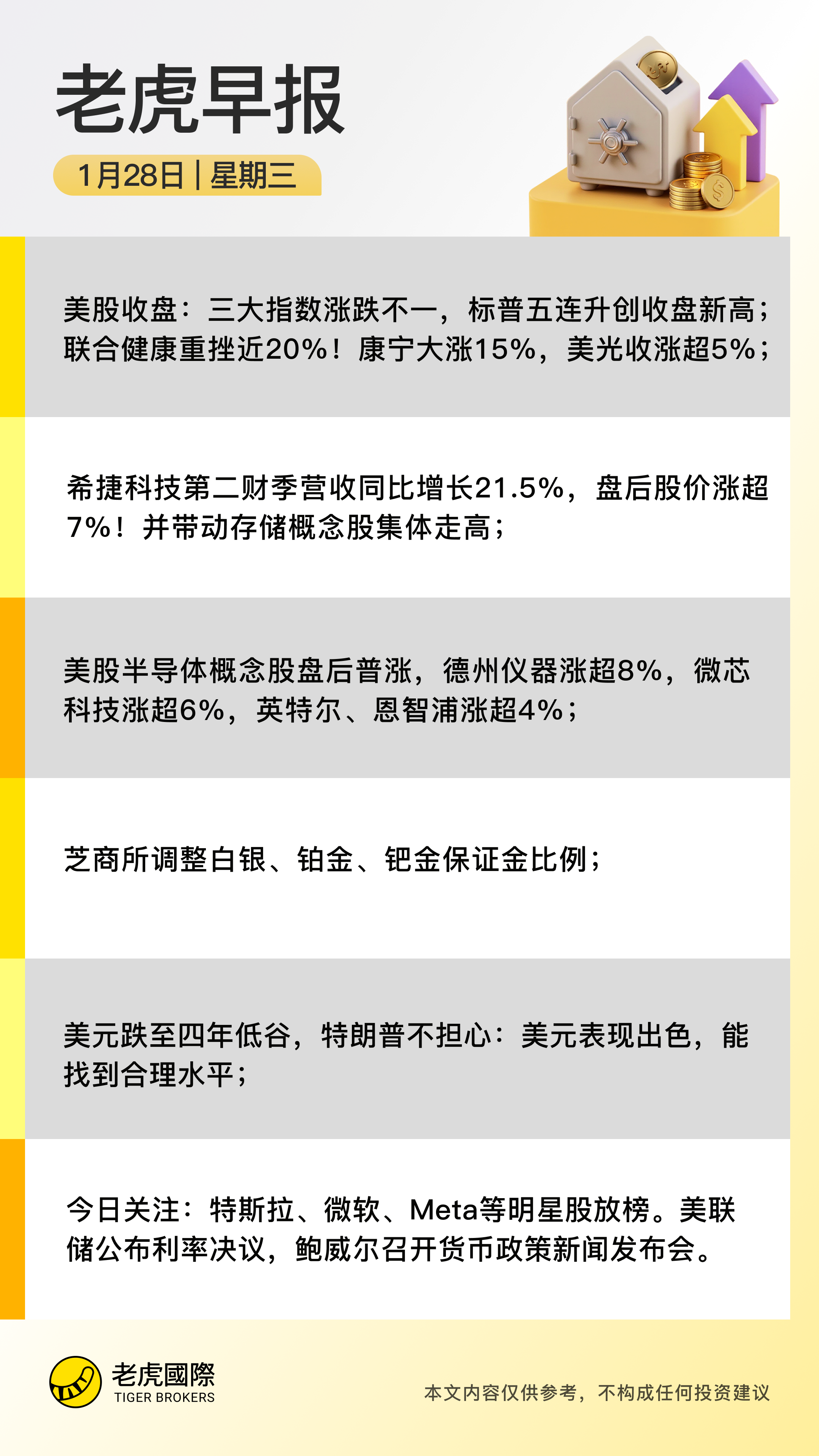 今日关注:特斯拉、微软、Meta、阿斯麦、星巴克、IBM、安诺电子、通用动力公布财报;美联储公布利率决议,美联储主席鲍威尔召开货币政策新闻发布会