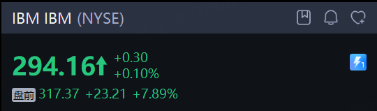 IBM 盘前涨近8%。IBM四季度营收、调整后EPS、软件收入均好于预期。今年营收指引也超预期。有望在2029年前推出首台大型量子计算机。