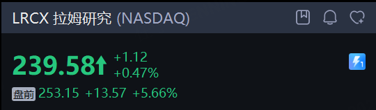 半导体制造设备商 拉姆研究 盘前涨约6%,开盘势创历史新高。泛林集团公布了超预期的2026财年第二季度财报和业绩指引。