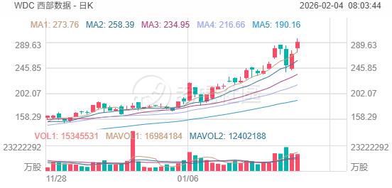 存储链条中,西部数据涨7.40%,闪迪涨4.55%,希捷科技涨2.66%;美光则跌超4%。