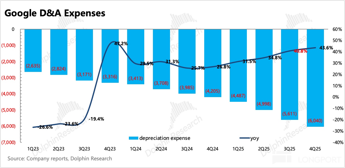 6. 投入对利润的影响还未显现:Q4 经营利润率还有接近 32%,环比、同比下滑还不是很明显,低于预期是因为 Waymo 融资而多出了一笔员工激励。但从 Q3 开始,折旧费用就已经开始走高,同比 40%+ 的增长。