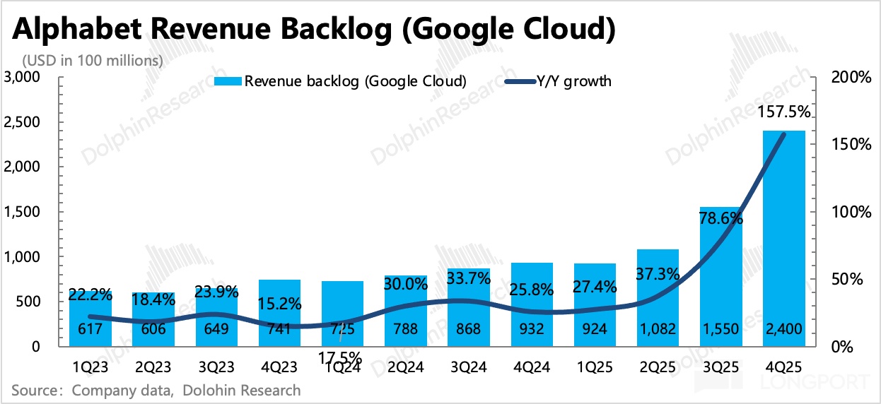 云业务是谷歌 AI 重估中的关键支撑,从前瞻角度而言,市场也更关注积存订单的增长情况。