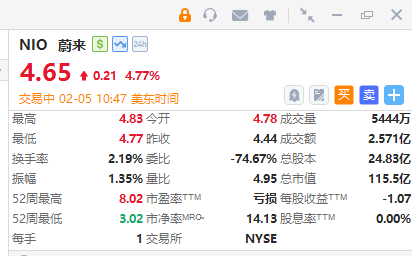 华盛资讯2月5日讯,蔚来大涨近5%,预计25年Q4首度实现单季盈利;