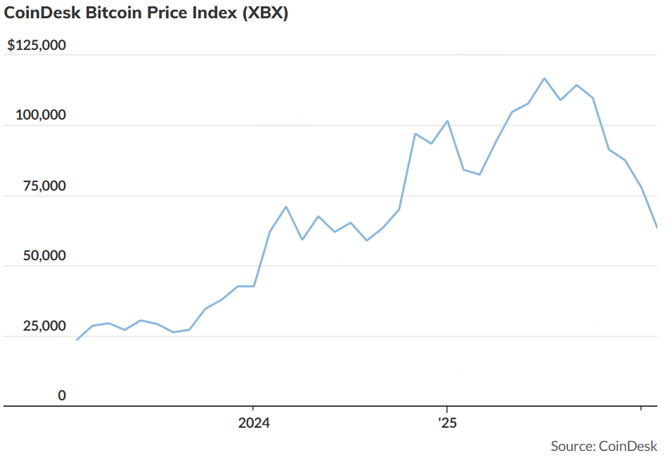 比特币曾被视为对抗货币贬值的避险工具,但如今的走势却更像一只高波动的科技投机股——自去年10月初高点以来,价格已回撤约50%。