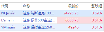 美股三大期指盘前普涨,纳指期货 $NQmain 涨0.59%,标普500期货 $ESmain 涨0.51%,道指期货 $YMmain 涨0.51%。