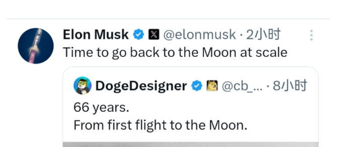 - 马斯克发文重返月球!我国周末成功发射可重复使用试验航天器