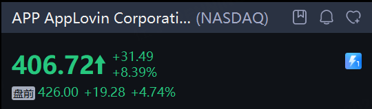 AI应用概念股盘前普涨。 AppLovin Corporation 涨近5%, Roblox Corporation 涨超3%, Palantir Technologies Inc.涨超2%,Snap Inc 、 Unity Software Inc. 涨超1%。
