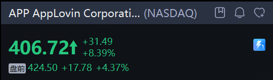 AI应用概念股盘前普涨。 AppLovin Corporation 涨超4%, Roblox Corporation、Palantir Technologies Inc.涨超1%,Snap Inc 、 Unity Software Inc. 小幅走高。