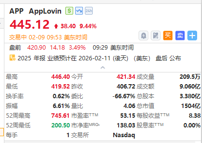 AI应用软件股部分反弹,Roblox $RBLX 、Applovin $APP 大涨超9%,Unity Software涨超6%,MongoDB 、Palantir涨近3%。