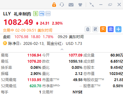 华盛资讯2月9日讯,礼来涨逾2%,将收购免疫细胞工程公司Orna Therapeutics;