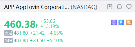 部分AI应用概念股夜盘续涨,Applovin涨超5%,Datadog涨超2%,Palantir涨超1%。