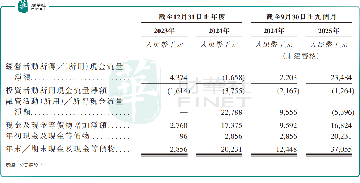 第零智能亮眼业绩背后,隐忧同样不容忽视。现金流方面,公司2024年经营活动所得现金流量净额为-165.8万元,不过2025年前三季转正为2348.4万元。