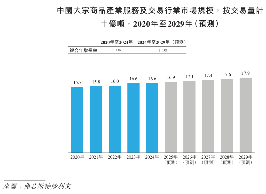根据弗若斯特沙利文的资料,按2024年贸易量计,公司是中国第五大大宗商品产业服务商及交易商;是中国第四大钢材类产业服务商及交易商,同时是中国第二大钢材类出口产业服务商及交易商;是中国第三大铁矿砂类产业服务商及交易商; 以及是中国第三大橡胶类产业服务商及交易商。