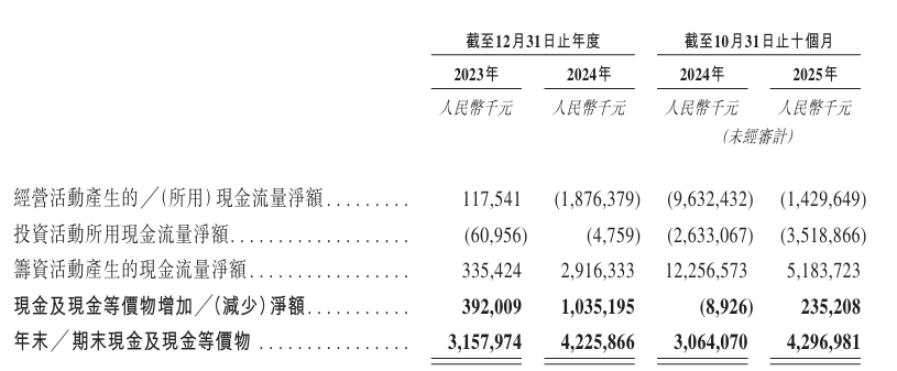 作为典型的资本密集型行业,大宗商品贸易对资金的需求量极大,而热联集团的资金链状况同样不容乐观。招股书显示,公司经营活动现金流已连续两年为负,2024年经营活动现金流净额为-18.76亿元,2025年前10个月为-14.30亿元。现金流的持续恶化,意味着公司主营业务的造血能力严重不足,无法通过自身经营活动产生足够资金,支撑业务发展与债务偿还,只能依赖外部融资维持正常运营。