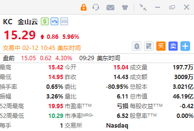 金山云续涨近6%,华住、万国数据涨超2%,日月光半导体、亚朵涨超1%。