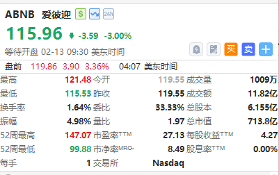 爱彼迎涨超3%,Q4核心运营指标表现强劲。