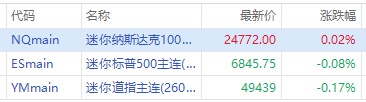 华盛资讯2月13日讯,美股三大期指涨跌不一,截止发稿,道指期货 $YMmain 跌0.17%,纳指期货 $NQmain 涨0.02%,标普500指数期货 $ESmain 跌0.08%。