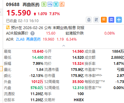 华盛资讯2月13日讯,再鼎医药大涨7%,ZL-1310拟纳入突破性疗法,有望成为SCLC治疗领域突破性疗法。