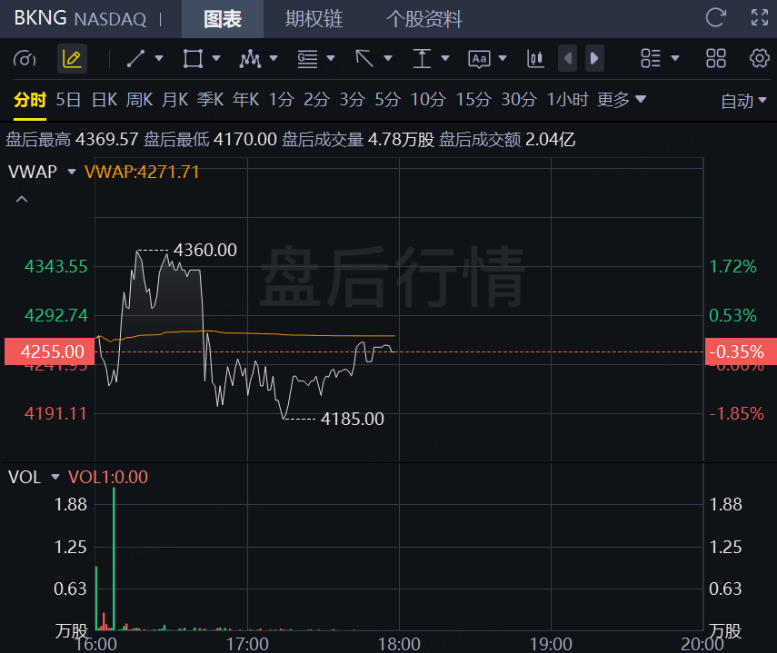 2月19日,Booking Holdings盘后一度涨近2%!该公司公布的第四季度业绩超出分析师预期,调整后每股收益为48.80美元,超出预期0.61美元,营收为63.5亿美元,超过61.2亿美元的市场共识。
