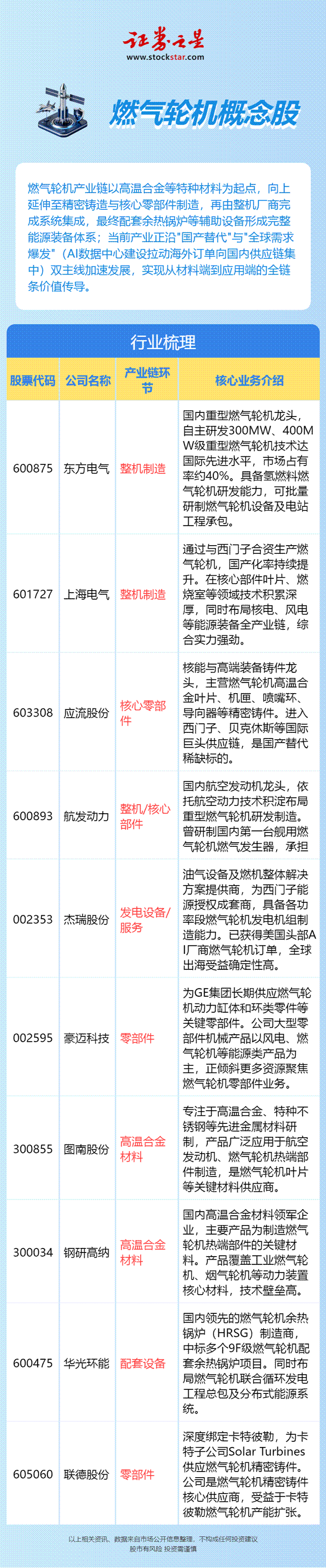 当全球AI算力军备竞赛将电力供应瓶颈推至台前,当重型燃气轮机的轰鸣声再次响彻亚太地区的分布式能源电站,这个长期被西门子、GE、三菱重工垄断的高端装备赛道,正悄然经历一场由"自主可控"与"出海放量"共同定义的结构性变革。从高温合金母材到精密铸件,从核心叶片到整机集成,中国燃气轮机产业链的十大核心标的,正在技术突破与订单爆发的双重验证下,迎来价值重估的关键节点。