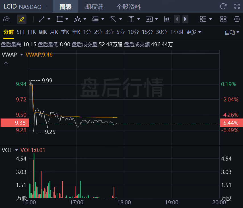 纽约股市盘后交易中,Lucid股价跌超5%。