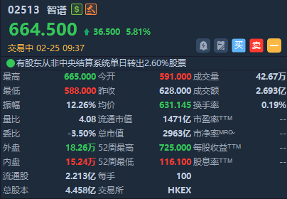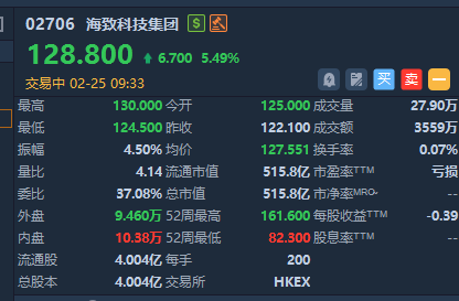华盛资讯2月25日讯,部分AI应用股盘初走高!智谱涨近6%,海致科技集团涨超5%。