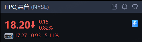 惠普盘前跌超5%。惠普第一财季营收同比增长6.9%至144亿美元,调整后每股收益81美分,均超过市场预期;调整后营业利润率为6.9%,低于市场预期的7.4%。惠普目前预计2026财年每股收益将位于2.9至3.2美元指引范围的低端,多重因素挤压利润空间,包括美国关税的不确定性,以及存储芯片供应短缺且价格飙升。
