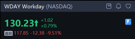 Workday盘前跌超9%。Workday预测其2027财年的年度订阅收入将在99.3亿至99.5亿美元之间,这一数字低于华尔街分析师普遍预期的100亿美元。