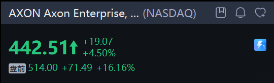 盘前异动|AXON大涨超16%,CAVA涨超8%,英伟达财报前小幅走高