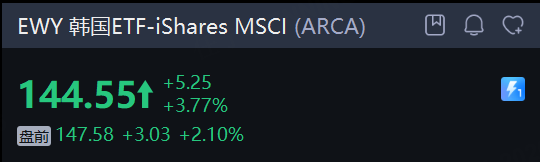 韩国ETF-iShares MSCI 盘前涨超2%。韩国股市年内涨超40%,冲破6000点。总市值超越法国股市,升至全球第九。