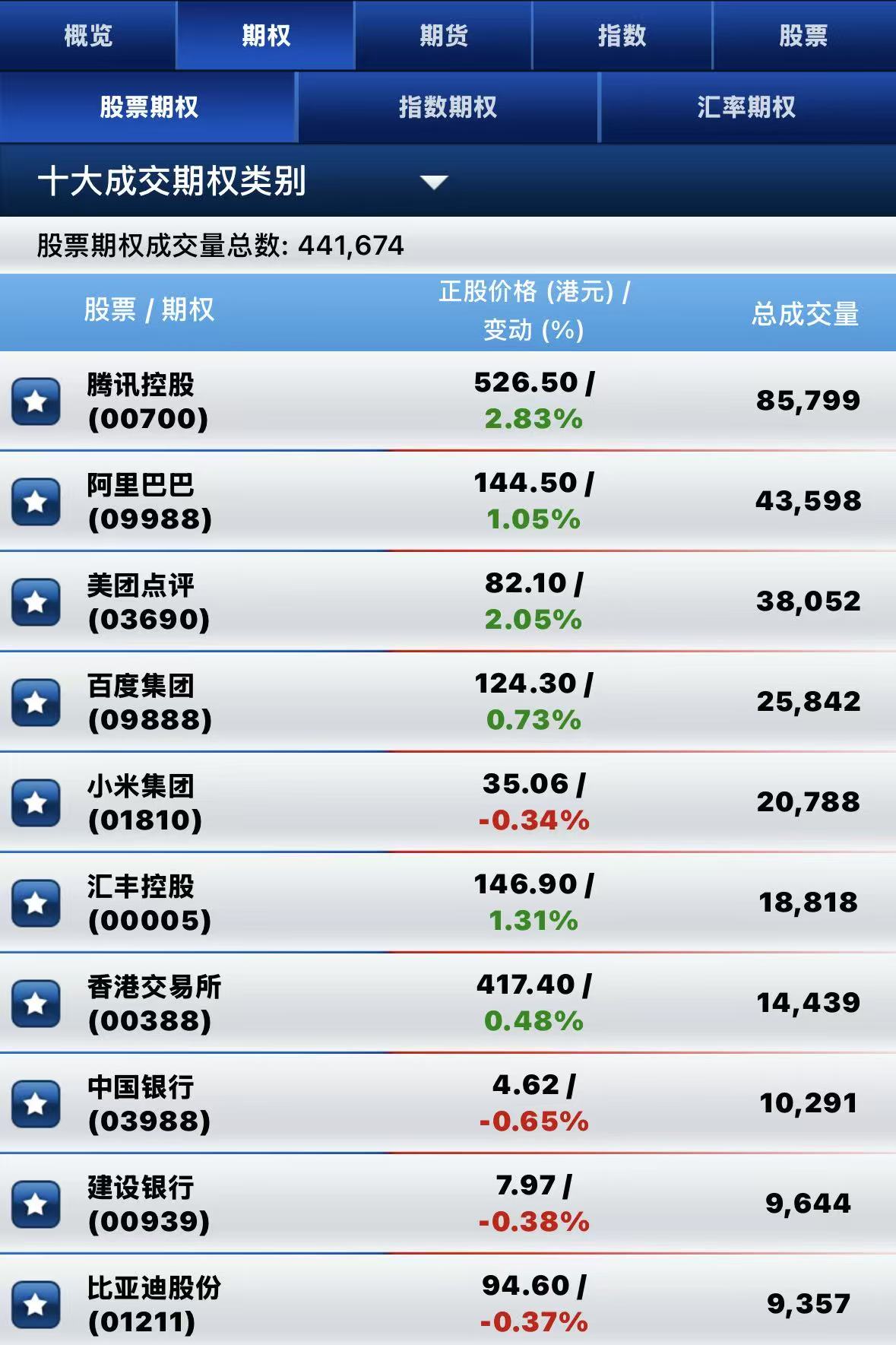 港股期权 | 腾讯涨近3%,期权成交超8.5万张;阿里、美团认购期权交易活跃