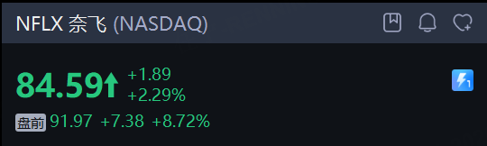 奈飞 盘前涨近9%。消息面上,奈飞退出了对华纳兄弟探索公司的收购争夺,为竞争对手派拉蒙天舞敲定这笔价值1110亿美元的交易铺平了道路。