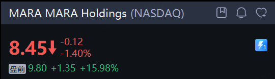 MARA Holdings 盘前涨约16%。MARA宣布将从纯粹的比特币矿商转型为能源和数字基础设施公司,将与私募投资公司Starwood合作建设AI数据中心。