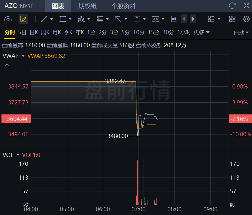 3月3日,汽车零部件零售商AutoZone盘前跌超7%!第二财季营收为42.7亿美元,不及市场预期。