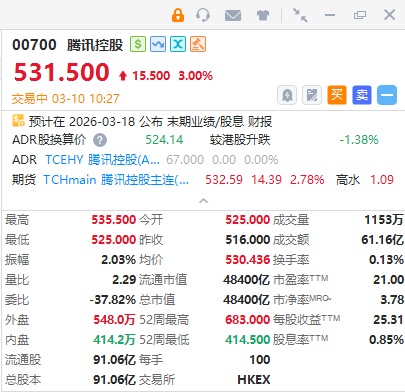 华盛资讯3月9日讯,腾讯大涨3%,消息面上,国内巨头争相入局“养龙虾” ,“腾讯版“小龙虾”WorkBuddy正式上线。