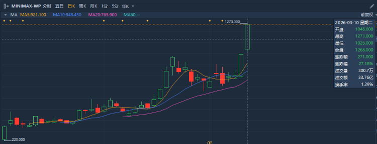 资本市场上,港股AI应用概念股集体大涨,截至发稿,MiniMax近两日大涨超56%,1月上市至今涨近670%,股价突破1260港元;智谱两日涨超25%,金山云涨超9%。