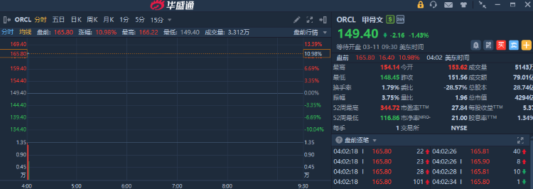 华盛资讯3月11日讯,甲骨文盘前股价大涨近11%,此前公布超预期Q3财报,单季营收和EPS均涨超20%。