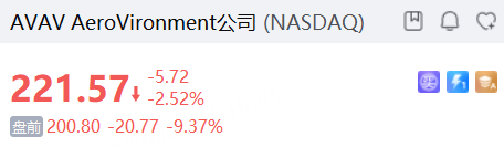 无人机概念股AeroVironment盘前跌超9%,下调本财年业绩指引。