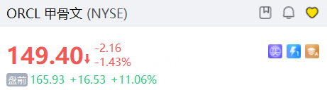 AI订单强劲,甲骨文上季营收盈利均超预期增超20%、上调下财年指引,盘前股价涨超11%;