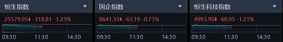3月12日,受中东紧张局势持续影响,港股上午盘三大指数低开低走,恒生指数跌1.23%,国企指数跌0.73%,恒生科技指数跌1.21%。