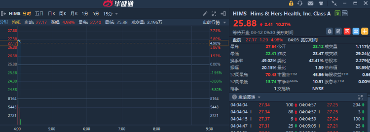 华盛资讯3月12日讯,远程医疗公司Hims & Hers Health $HIMS 盘前再涨超5%,月内累计升幅超80%;公司此前挖角礼来公关大将,剑指品牌减肥药新战场。