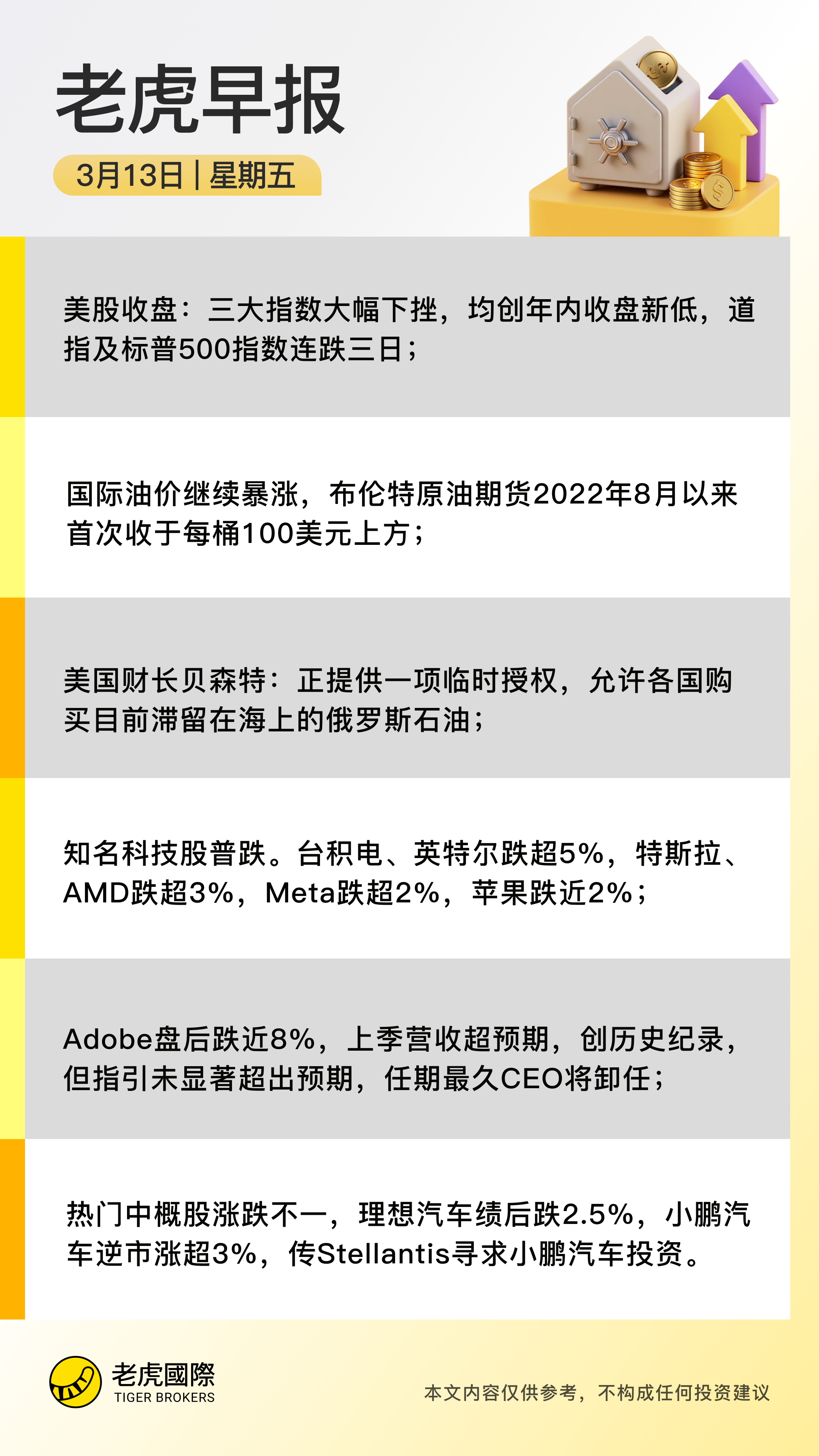 周四(3月12日),美股三大指数大幅下挫,均创年内收盘新低,道指及标普500指数连跌三日。截至收盘,道指跌739.42点,跌幅为1.56%,报46677.85点;纳指跌404.16点,跌幅为1.78%,报22311.98点;标普500指数跌103.22点,跌幅为1.52%,报6672.58点。