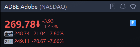 Adobe 盘后及夜盘大跌近8%。公司第一财季营收同比增长12%至64亿美元,创单季最高纪录,非GAAP口径下调整后每股收益(EPS)也同比两位数大增,较分析师预期高约3%。Adobe提供的第二财季指引基本符合市场预期,并未带来多少“惊喜”。