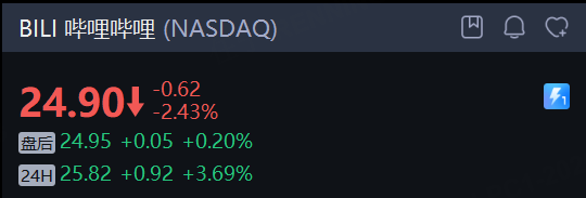 部分中概股夜盘拉升, 哔哩哔哩 涨近4%,蔚来 涨近3%,阿里巴巴 、 京东涨2%,百度涨1%。
