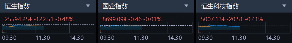 3月13日,港股上午盘三大指数再度小幅下跌,盘中曾直线拉升转涨,恒生指数午间收跌0.48%,国企指数微跌0.01%,恒生科技指数跌0.41%。
