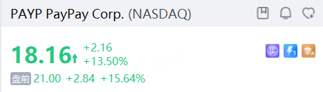 软银集团旗下的电子支付公司PayPay(PAYP)昨日正式登陆纳斯达克,上市首日收涨13.5%,报18.16美元,总市值超过120亿美元。该股今日盘前续涨超43%,报25.98美元。