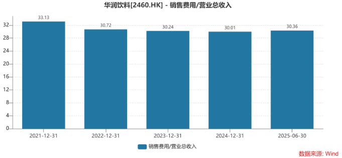 证券之星注意到,面对竞争压力,华润饮料正在通过加大营销投入、调整产品结构以及推进渠道变革等方式寻求突围。在营销端,华润怡宝侧重体育运动营销战略,聚焦运动核心人群。数据显示,其营销费用已从2021年的37.57亿元增至2024年的40.58亿元;2025年中报显示,营销费用达18.84亿元,对应销售费用率为30.36%,高于同期农夫山泉19.6%的水平。