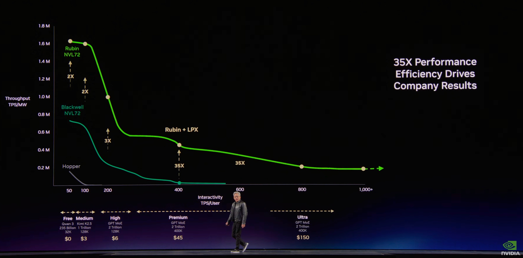 token 将像大宗商品一样细分层级:免费层(高吞吐、低速度)->$3/百万 token 层->$6/百万 token 层->$45/百万 token 层->$150/百万 token 层(顶级低延迟、高带宽算力)。