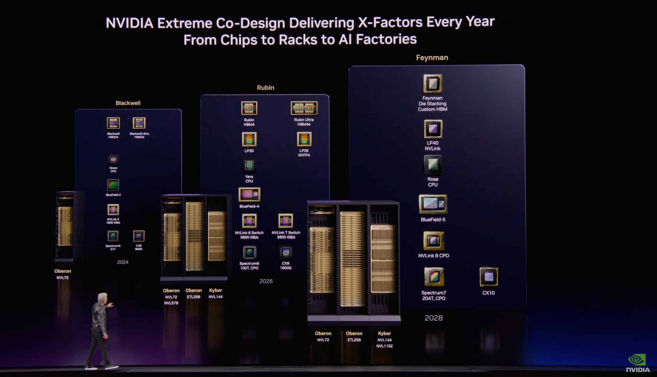 6)Feynman:全新 GPU + LP40(LPU)+ Rosa CPU(以 Rosalind 命名)+ BlueField-5 + CX10。